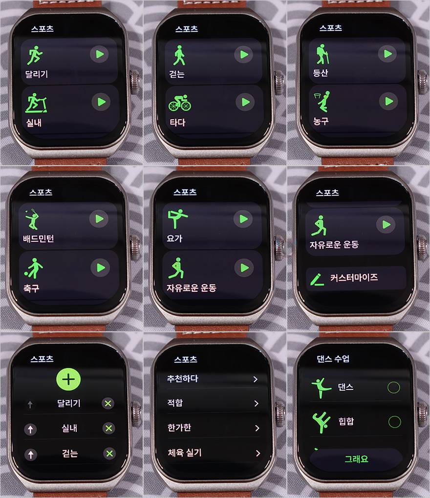 그럼, 메뉴들을 잠깐 살펴보면, 가장 먼저 통화기능이 있는데, 블랙샤크 GT3는 먼저 만났던 S1 Pro나 샤오미의 최신 스마트워치 제품들과 마찬가지로 블루투스 통화 기능을 가지고 있습니다. 수신뿐만 아니라 직접 전호를 입력해서 발신까지 가능하죠. 그리고, 운동모드 같은경우에는 기본적으로 10가지 모드를 첫 번째 운동메뉴로 보여주지만, 사용자가 언제든지 순서를 변경하거나 추가할 수 있으며, 커스터마이즈 운동모드로 들어가면 더 다양한 운동모드를 선택할 수 있습니다. 다만, 일부 운동모드의 한국어 표기가 부자연스럽게 표시되고 있어서 완성도가 조금 아쉽습니다.