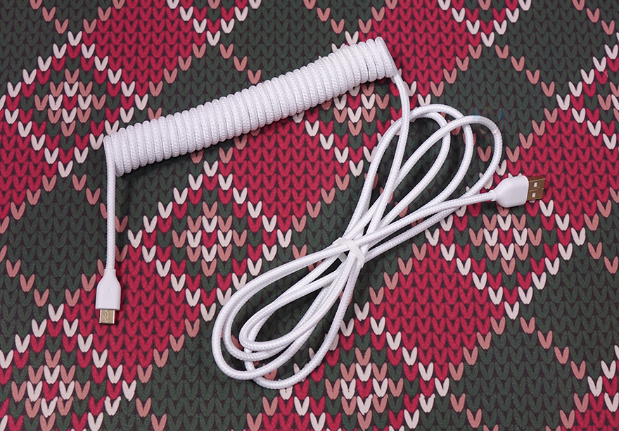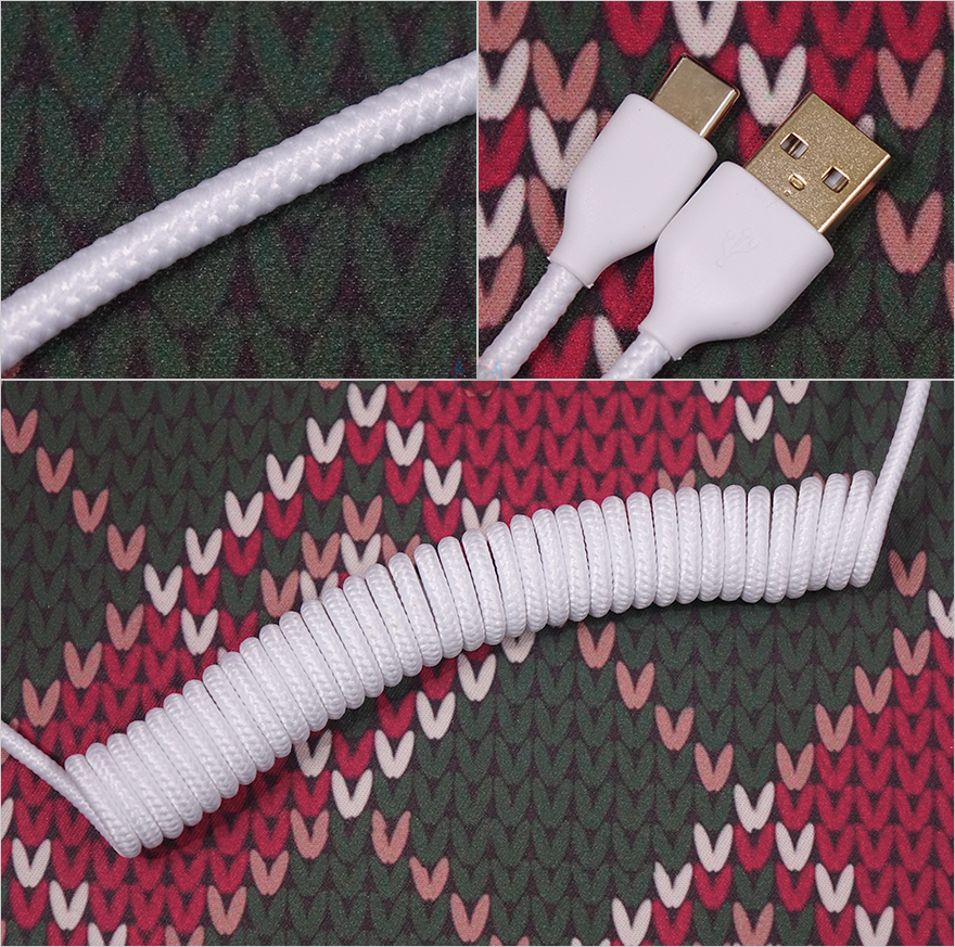 끝으로, 기본제공되는 분리형 USB 전원케이블은 총 1.8m 길이에 일부는 확장이 가능한 16cm 길이의 코일형태로 적용된 케이블이며, 전체 슬리빙처리까지 깔끔하게 적용되었습니다. 또한, 신호손실 최소화를 위해 인터페이스부분에는 금도금 처리를 했으며, 인터페이스는 USB Type-C to A를 가졌습니다.
