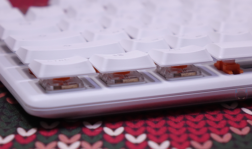 키 스타일은 키캡 아래가 노출된 비키(viki) 스타일이며, 앞서 제품 이름에서 언급했듯 스트릭80 LP는 로우프로파일 콘셉트를 가졌습니다. 쉽게 말해, 스위치가 로우-프로파일이라는 거죠. 그래서, 키캡 역시 여기에 어울리는 낮은 높이의 키캡을 가졌는데, PBT 이중사출방식으로 국내시장에 맞게 한글 자판까지 적용되었습니다. 스위치는 스위치 박스에 카일(Kailh)이라고 표기되어 있지만, 카일에는 없는 스위치 즉, 프나틱(Fnatic) 자체 커스텀의 로우-프로파일 스위치로 스위치 작동거리가 일반 로우-프로파일보다 20% 줄어든 1.0mm에 불과하고 깊이를 그대로 3.2mm를 가진 리니어 타입입니다. 쉽게 말해, 스피드 리니어 로우프로파일 스위치라는 거죠. 물론, 기본 베이스는 카일에서 가져왔기 때문에 키 수명은 5천만 회를 가졌고, 스페이스-바 같은 긴 키들의 스테빌라이저는 체리식입니다.