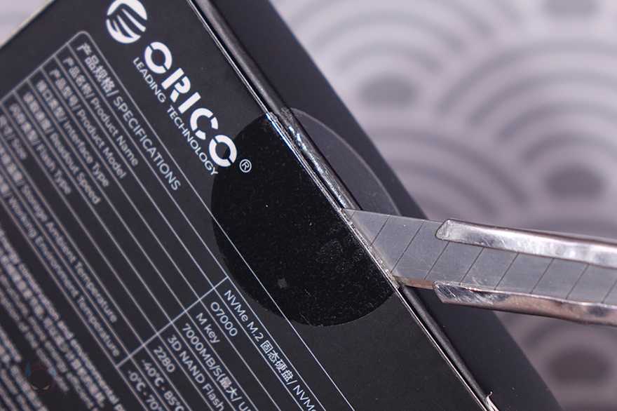 제품패키지는 다른 NVMe SSD 제품들처럼 박스형 포장으로 전면에는 ORICO 브랜드 표기와 함께 제품 이미지를 담고 있으며, 아래에 용량과, PCIe 4.0 규격, 그리고 읽기속도를 표기해놨습니다. 뒤에서도 확인하겠지만, 시작에서 언급했던 저가형 NMVe SSD의 가장 큰 특징은 바로 읽기속도가 빠르다는거죠. 그리고, 박스 후면에는 제품의 기본 사양을 표기해놨는데, 역시 읽기속도를 표기해놨고, 3D NAND 플래시와 2280 사이즈 표기도 확인할 수 있습니다. 또한, 후면 아래쯤에는 내부에 포장된 제품의 실물을 외부에서 일부 볼 수 있게 노출되어 있죠.