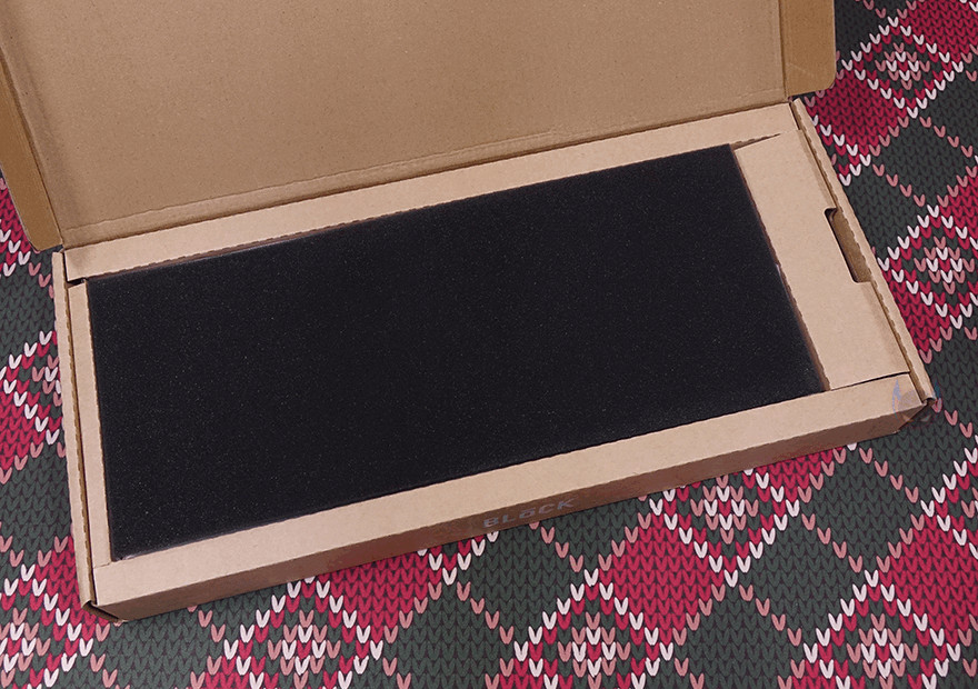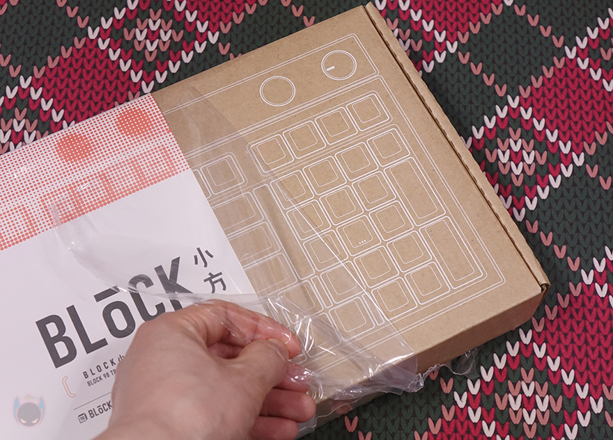 라벨 종이를 빼내면, 박스 패키지의 디자인을 좀 더 명확히 볼 수 있는데, 박스 전면에는 BLOCK 98 키보드 상판 디자인을 그대로 담고 있으며, 박스 후면에는 BLOCK 98 키보드 밑바닥 디자인을 그대로 담고 있습니다. 박스를 열어보면, 비닐 포장된 BLOCK 98 키보드를 확인할 수 있으며, 전체 제품 구성은 BLOCK 98 키보드, USB 전원 케이블, 제품설명서, 제품보증서로 이루어져 있죠. 뒤에서 확인하겠지만, 스위치가 분리되는 방식이라 키캡&스위치 리무버 도구까지 제공되었으면 좋지 않았을까 하는 아쉬움이 조금 있습니다.