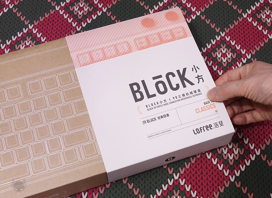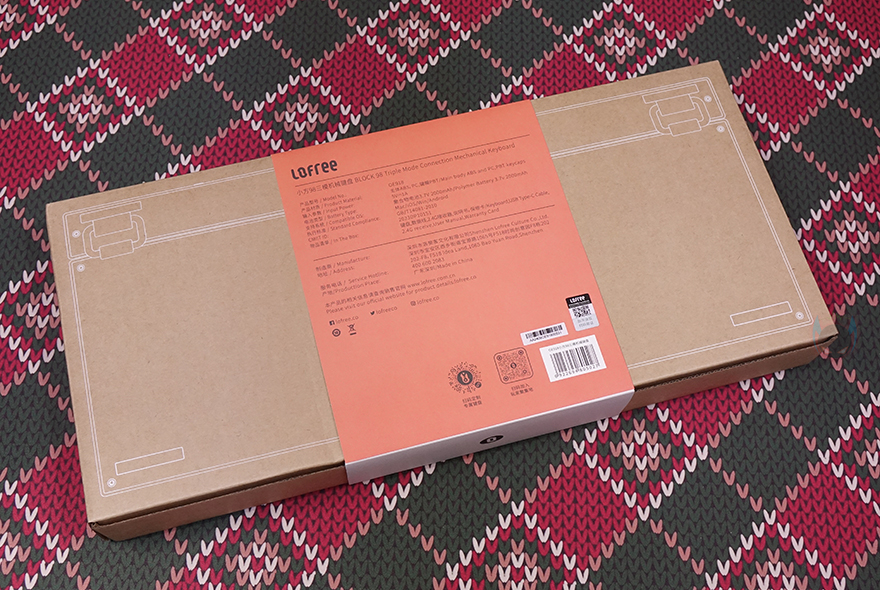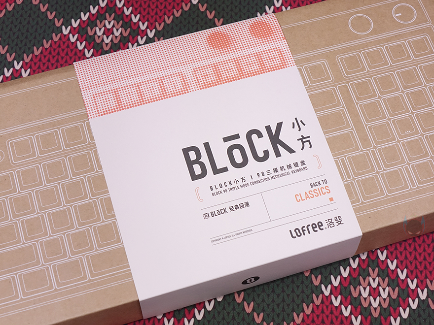 제품 패키지부터 살펴보면, 이미 앞서 피스커뮤를 통해 Lofree(로프리)의 다른 제품들을 만나봤듯이 거의 모든 제품이 박스 패키지이며, 비닐까지 밀봉처리된 경우가 많습니다. BLOCK 98 키보드 역시 박스 패키지로 비닐 밀봉까지 적용되었죠. 그리고, 박스 디자인도 클래식(Classic) 콘셉트에 어울리게 박스 본연의 색상에다가 라벨 종이를 끼워놨는데, 라벨 종이는 박스와 대비되게 컬러 디자인에 모델명과 콘셉트 문구 'Back to Classic'를 확인할 수 있죠. 그리고, 라벨종이 후면에는 제품의 기본 사양 표기를 확인할 수 있는데, 배터리 용량부터 키캡, 구성품 목록을 확인할 수 있습니다.