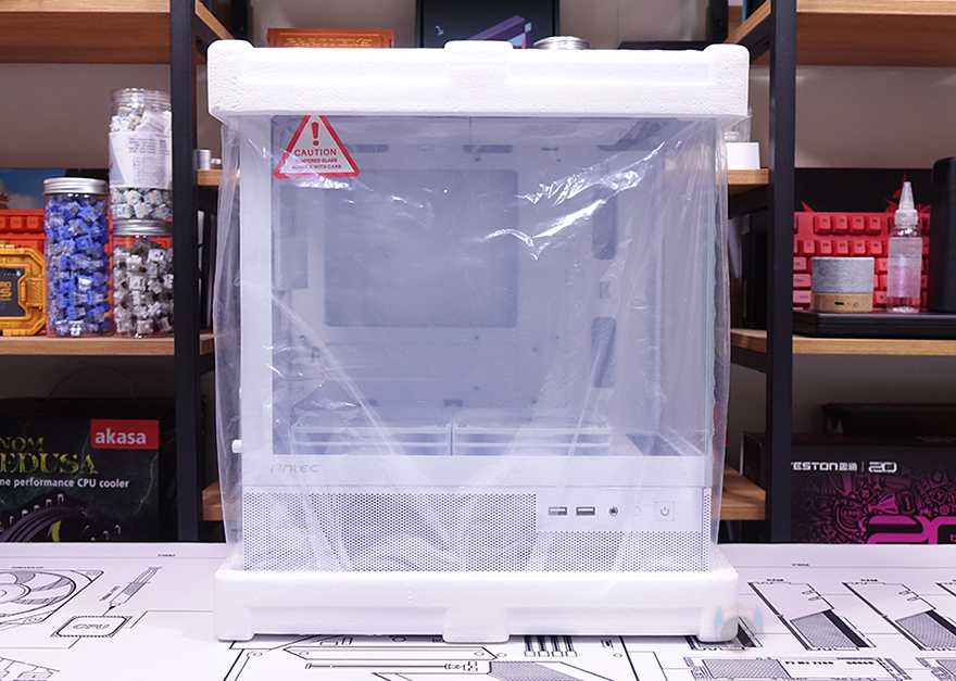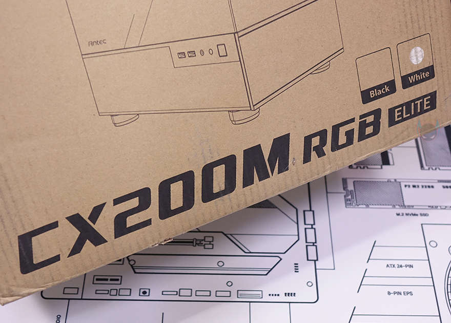 그럼, 본격적으로 안텍(Antec) CX200M RGB Elite 미니타워 PC케이스를 살펴보면, 일단 개봉시 전면과 측면에 강화유리에는 보호비닐이 부착되어 있습니다. 완전 투명한 유리이기 때문에 조립 후에 비닐을 제거하는 게 시각효과에 좋습니다. 그리고, 앞서 언급했듯이 색상은 블랙과 화이트 2가지로 출시되었죠.