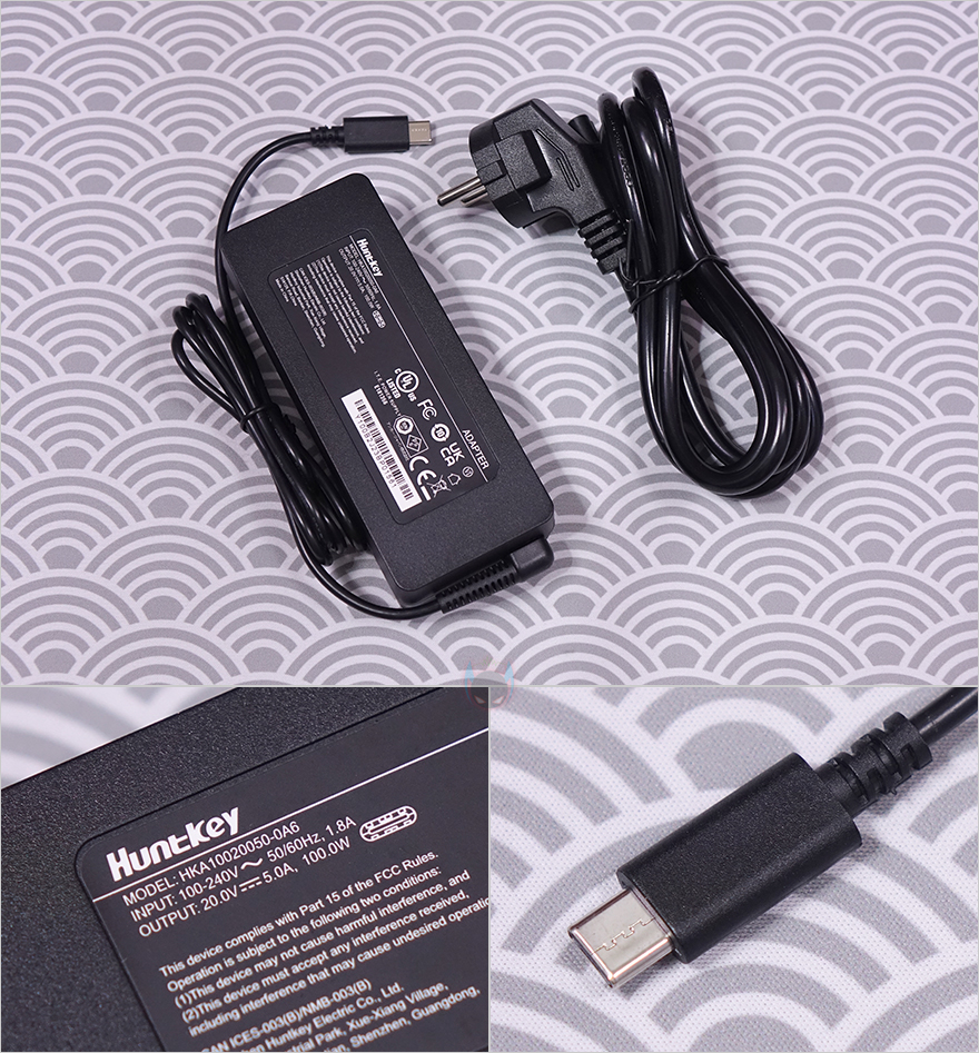 끝으로, AN3에 사용되는 전원 어댑터 및 전원 케이블, 그리고 HDMI 케이블을 잠깐 살펴보면, 전원어댑터는 앞서 후면에서 확인했듯이 DC 포트가 USB Type-C 포트로 갖추고 있어서, 어댑터의 전원 인터페이스 역시 USB Type-C로 갖추고 있습니다. 그리고, 어댑터 전원 출력은 100W인 것을 확인할 수 있으며, HDMI 케이블은 약 80cm 길이에 미사용 시 부식방지 및 먼지유입 방지를 위해 마개를 함께 제공해주고 있습니다.