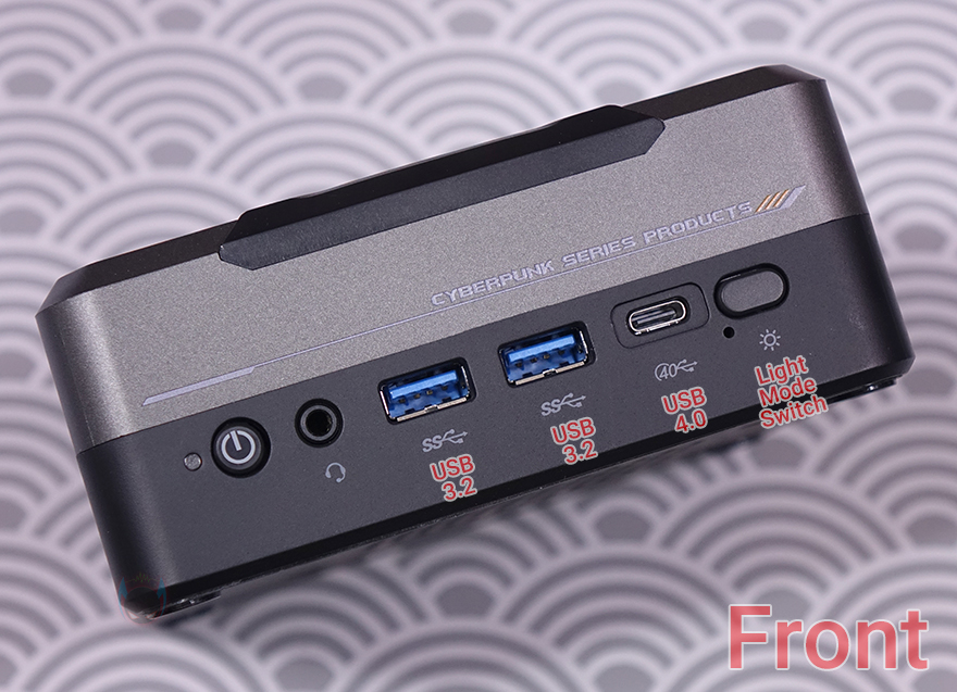 직접, CHATREEY AN3 미니 PC(mini PC)를 사용해 보면, 일단 본체에 전원이 들어오면 바로, 상단에 RGB 라이트 효과(Light effect)를 확인할 수 있습니다. 그리고, 전면에 배치된 라이트 모드 버튼(Light mode button)을 통해 모드 전환을 할 수 있는데, 레인보우(Rainbow) 모드를 비롯해, 숨쉬기 모드의 자동색상 전환(Breathe Auto color switch), 단일색상(Single color) 모드, 그리고 Off 순으로 전환됩니다.