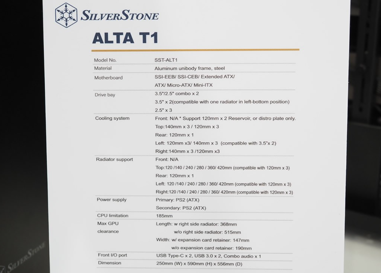 국내 PC시장에서 오랫동안 활동하고 있는 대만의 종합 PC하드웨어 전문업체 실버스톤(Silverstone)은 6월 4일부터 열렸던 컴퓨텍스 2024에서 하반기 출시예정인 신제품들을 공개했다. PC 케이스에서 가장 눈에 띄는 제품은 Tejin 시리즈 TJ07 PC 케이스 DNA를 가지고 ALTA 시리즈로 새롭게 복귀한 ALTA T1 모델이다. 외형적인 모습은 TJ07을 닮으면서 후면까지 곡선미 마감을 처리했으며, 시대 흐름에 따라 측면 사이드 패널은 강화유리로 적용되었다. 내부 구조를 보면 더욱 TJ07 DNA를 가졌다라는걸 느낄 수 있는데, 분리형 메인보드 트레이를 비롯 듀얼 파워서플라이 장착을 지원한다. 물론, 외형 프레임도 알루미늄이다.