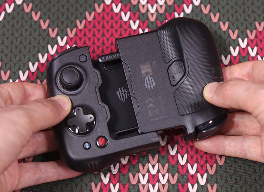 그럼, 본격적으로 Nubia(누비아)의 Redmagic Double Blade(레드매직 더블 블레이드) 게임패드를 살펴보는데, 앞서 제품 박스 후면에서 먼저 간접적으로 확인했듯이 이 제품의 가장 큰 특징은 패드가 분리형입니다. 그래서, 개봉시 파우치에서 꺼내면 패드가 결합된 상태로 있죠. 자석방식(Magnetic)으로 결합된 거라 양손으로 각각 패드를 잡고 벌리면 쉽게 분리가 됩니다. 기존에 일반적인 모바일 게임패드는 일체형으로 스마트폰 장착을 위해 길이가 늘어나는 방식이었다면, Redmagic Double Blade는 아예 분리된 형태로 스마트폰 길이에 대한 제한을 없애버렸죠.