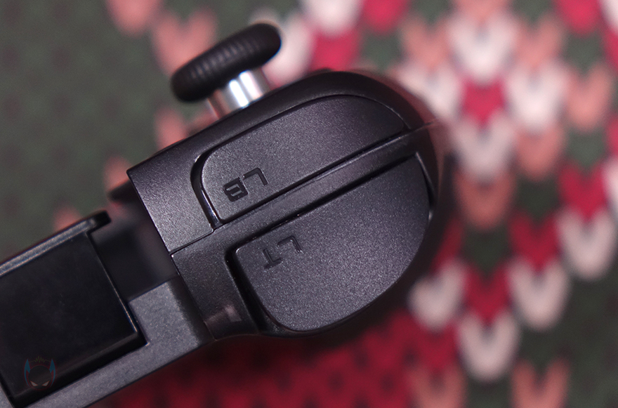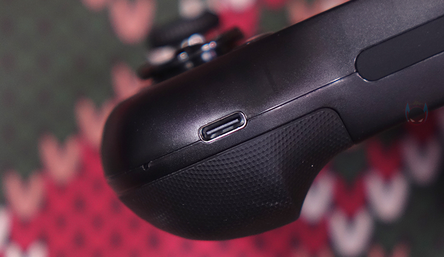 또한, 왼쪽 조이스틱 아래에는 D-Pad가 배치되어 있는데, D-Pad 역시 분리형으로 자석방식(Magnetic)이라 쉽게 분리가 되며, 교체용은 다각형 방향키(Polygonal arrow keys) 패드입니다. 그리고, 패드 아래에는 블루투스 표시의 페어링 버튼과 같은 위치 바로 오른쪽에 홈(Home) 버튼이 배치되어 있습니다. 그리고, 패드 앞부분에는 트리거 버튼(LB/LT)이 배치되어 있으며, 패드 아래쪽에는 USB 충전케이블과 연결되는 USB Type-C 포트가 배치되어 있죠. 패드 후면에는 왼쪽 백버튼(L4)이 배치되어 있으며, 그립감을 위해 후면에 부드러운 고무 재질로 마감처리된 것을 확인할 수 있습니다.