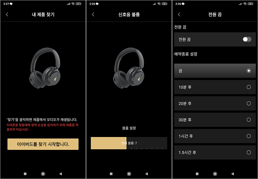 H9 무선 헤드폰 역시 W800BT Pro와 마찬가지로 에디파이어의 공용앱 ConneX를 지원합니다. 블루투스 연결이 정상적으로 이루어지면, 앱을 실행했을 때 메인화면에서 H9 장치 연결상태와 함께 배터리 잔량을 확인할 수 있고, 아래에 메인 메뉴로 노이즈 캔슬레이션 컨트롤/사운드 효과/사운드모드를 확인할 수 있죠. 노이즈 캔슬레이션 컨트롤은 ANC 기능과 주변 소음 모드 조절을 할 수 있으며, 사운드 효과는 표준/다이나믹/커스터마이즈 3가지 모드를, 사운드모드 역시 음악/게임/공간음향 3가지 모드를 지원해주고 있습니다. 이 밖에도 디바이스 설정에서 제어설정 즉 방금 언급했던 이어 컵의 버튼 기능들을 사용자가 따로 설정할 수 있으며, 헤드폰 주변 분실 시 위치 알림, 전원 및 모드 전환 시 나오는 음성 신호음 볼륨조절, 전원 예약종료시간 등을 설정할 수 있습니다.