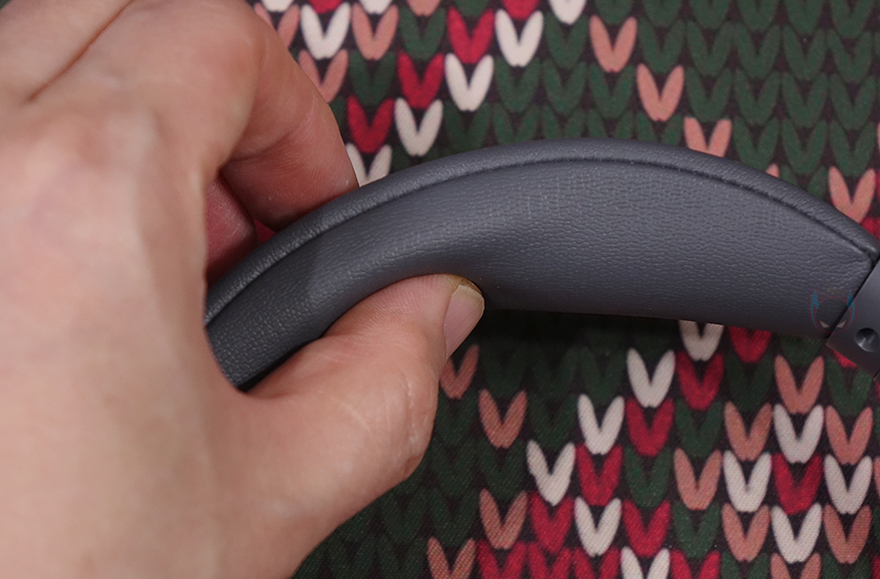 본격적으로 에디파이어의 H9 무선 헤드폰을 살펴보면, 색상은 블랙/그레/아이보리 3가지 색상으로 출시했습니다. 역시 이전 시간에 만났던 W800BT Pro와 동일한 색상 조건이죠. 무게는 약 265g으로 W800BT Pro보다 좀 더 무겁지만, 휴대하기에는 불편함이 없습니다. 전체적인 디자인이 앞서 만난 W800BT Pro와 이어-컵을 제외하면 유사합니다. 부위별로 좀 더 자세히 살펴보면, 헤드밴드 같은 경우 역시 W800BT Pro와 마찬가지로 바깥쪽과 안쪽 모두 가죽 질감으로 마감처리했으며, 안쪽은 편안한 착용감을 위해 쿠션이 적용되었죠.