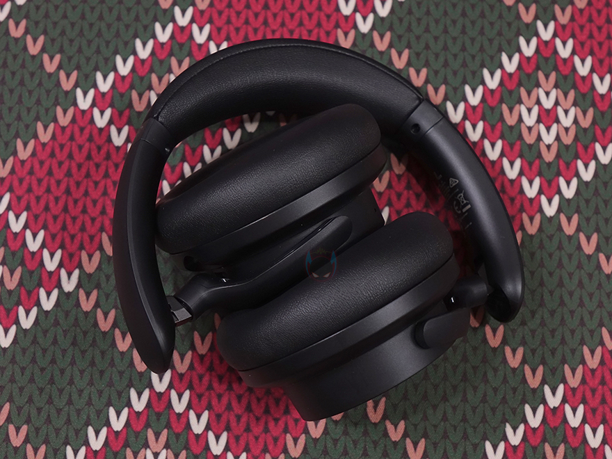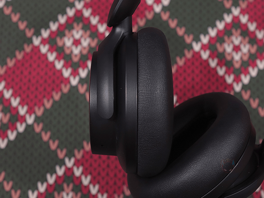 이어-컵 부분을 좀 더 자세히 살펴보면, 바깥쪽에는 ANC와 주변 소음 감지를 위해 마이크홀이 적용되어 있으며, 오른쪽 이어컵 아랫부분에는 버튼 및 포트가 배치되어 있는데, 앞쪽에 전원버튼과 양쪽으로 볼륨조절 버튼이, 그리고 볼륨감소 옆에는 블루투스 페어링 버튼이 배치되어 있습니다. 바로 옆에는 USB 충전케이블과 연결되는 USB-C 포트가 배치되어 있으며, 그 옆에는 작동상태를 확인할 수 있는 LED 인디케이터도 적용되어 있고, 그 옆에는 마이크가 배치되어 있습니다. 전체적인 배치가 역시 W800BT Pro와 유사하고, 마이크 부분만 구멍이 작은 편이죠. 또한, 이어 컵 틸트 부분에도 사운드 덕트가 적용되어 있으며, 이어 컵 안쪽 이어 패드 부분은 헤드밴드와 마찬가지로 가죽 질감에 쿠션을 적용했습니다. 끝으로, 기본 제공되는 USB 충전케이블은 약 1.5m 길이에 양쪽 모두 USB-C 인터페이스를 가졌습니다.