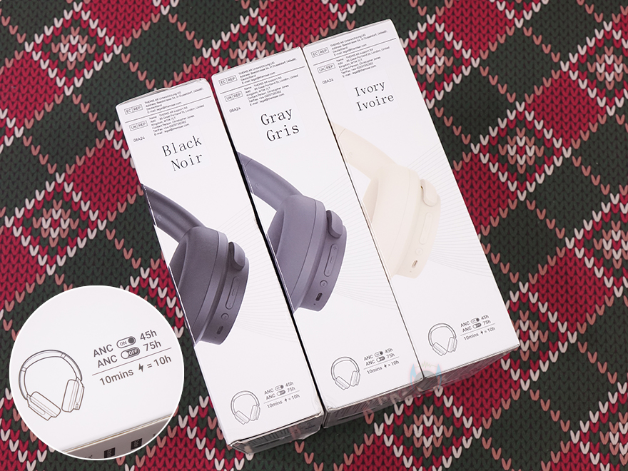 제품 패키지는 기존 자사 헤드폰 제품들과 마찬가지로 박스 전체 밀봉처리가 되어 있습니다. 그리고, 역시 제품 색상별로 박스 전면에 이미지를 담고 있어서, 오프라인에서 구매시 쉽게 색상 구분이 되도록 하고 있죠. 전면에는 이밖에 모델명과 함께 Hi-Res 오디오, ANC(액티브노이즈캔슬링), AAC코텍 지원, 그리고 블루투스와 최대 75시간 사용 표시를 추가로 확인할 수 있습니다. 박스 한쪽 측면에는 방금 언급한 색상구분을 표기로도 부착해 놨으며, 아래에는 사용시간을 ANC On/Off에 따라 좀 더 정확히 표기해 놨고, 반대쪽 측면에는 에디파이어의 공용앱 지원 QR코드 다운로드 표시도 해놨죠.