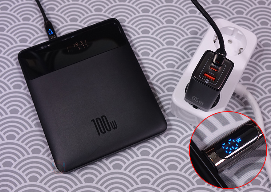직접, 유삼스(USAMS) 65W 고속충전기 US-CC180을 사용해보면, 충전할 기기의 배터리 잔량에 따라서 고속충전기의 출력속도는 항상 달라지는데, 그래도, 65W 고속충전기답게 60W 근접으로 출력되는 것을 확인할 수 있습니다. 또한, 앞서 언급했듯이 Type-C와 A 모두 각각 60~65W를 출력하기때문에, 싱글로 사용할 때는 어느 포트를 사용해도 만족스럽다라는거죠. 3개의 포트를 갖추고 있기때문에 스마트폰, 보조배터리, 노트북 등 다양한 제품은 동시에 사용해도 되고, 슬림한 두께를 가졌기때문에 콘센트 자리차지도 없고 간섭도 없습니다.